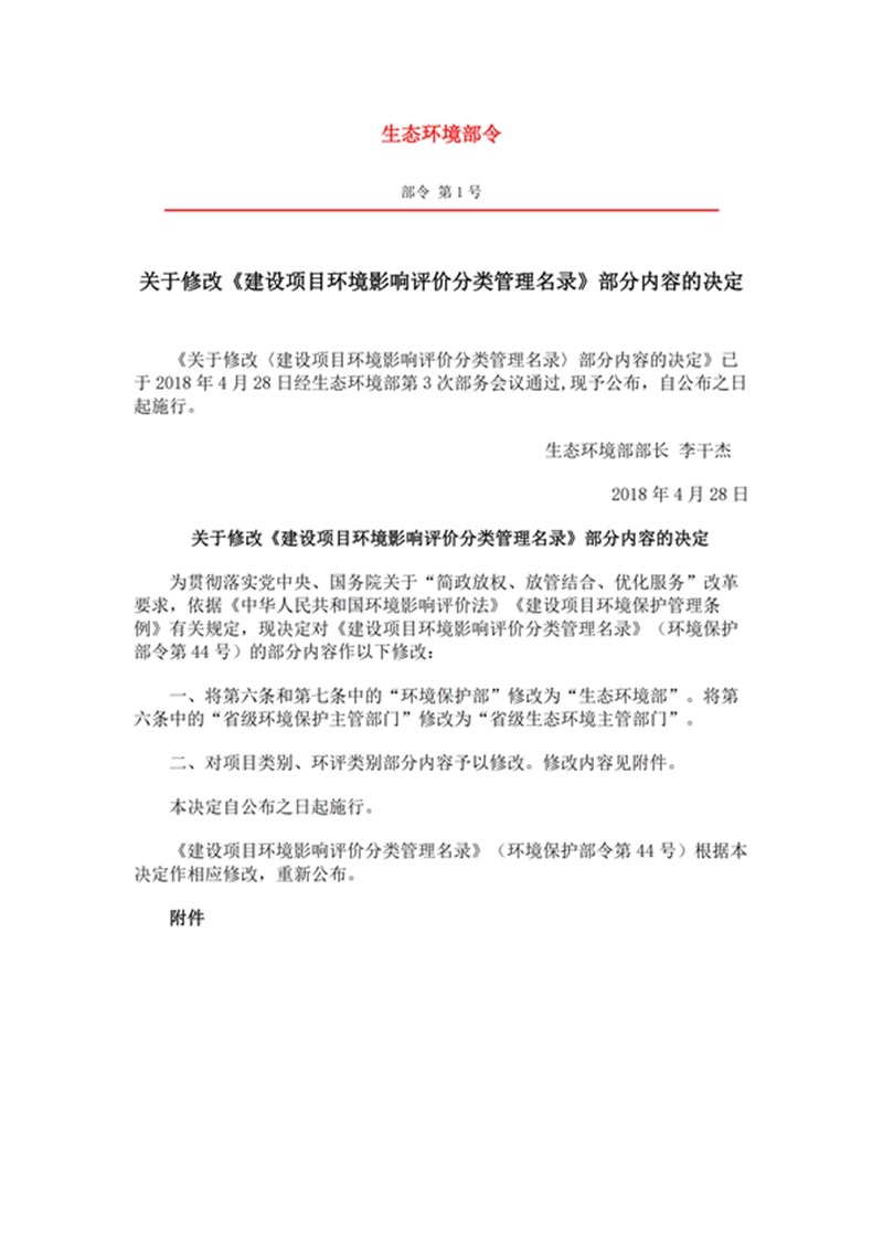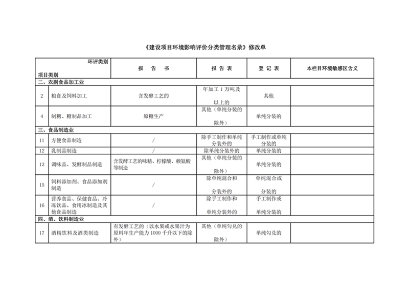 建设项目环境影响评价分类管理名录 修改部分内容的决定
