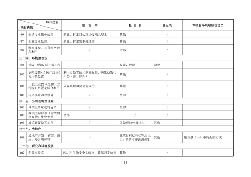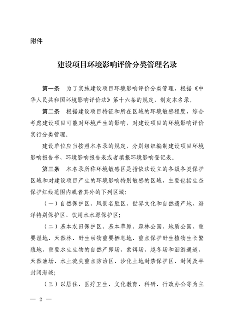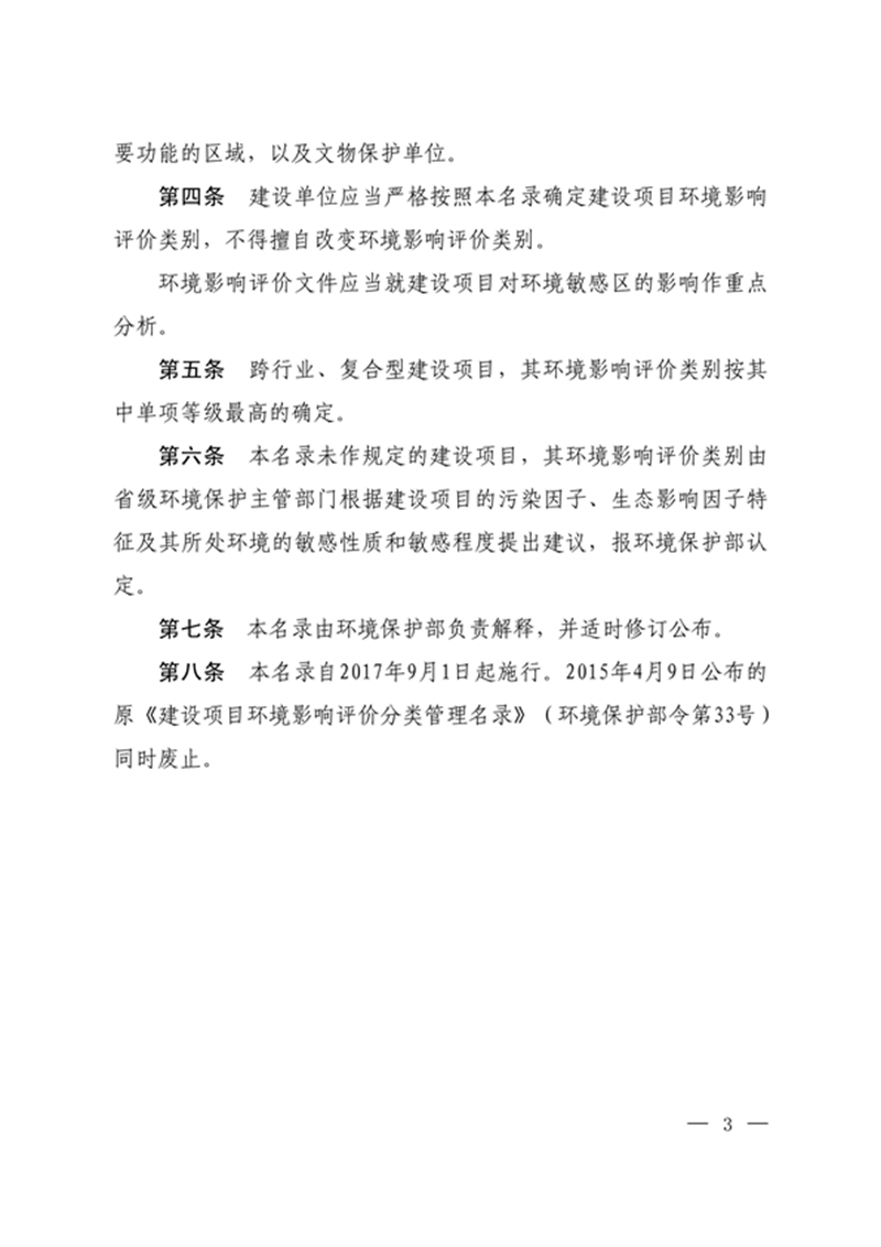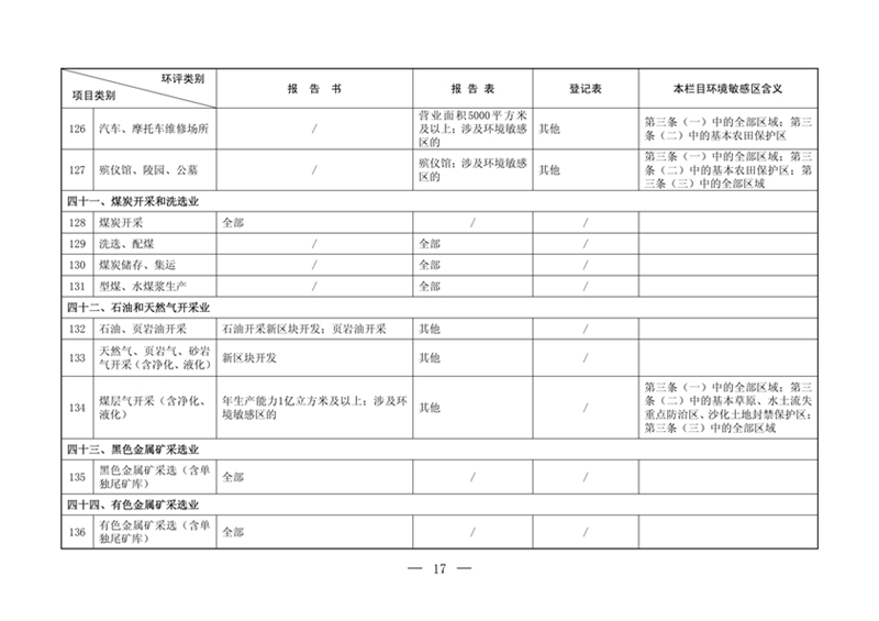建设项目环境影响评价分类管理名录2017